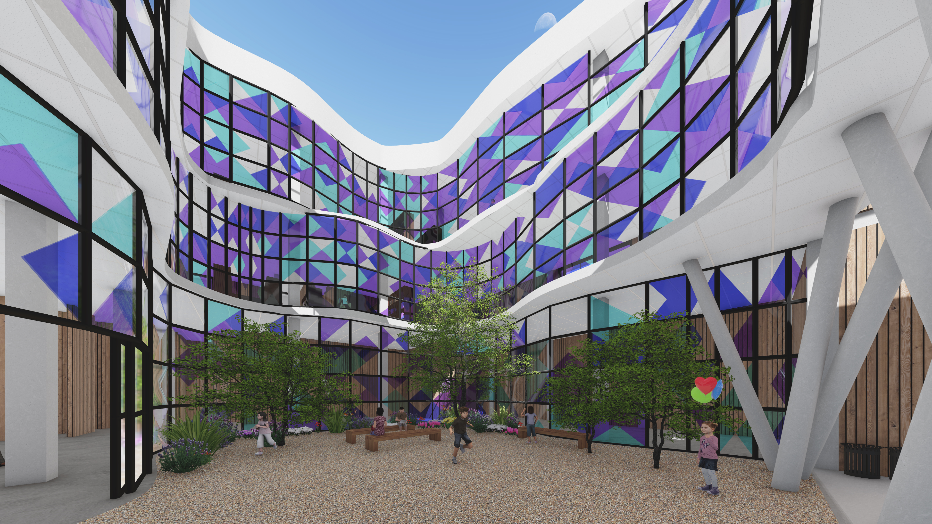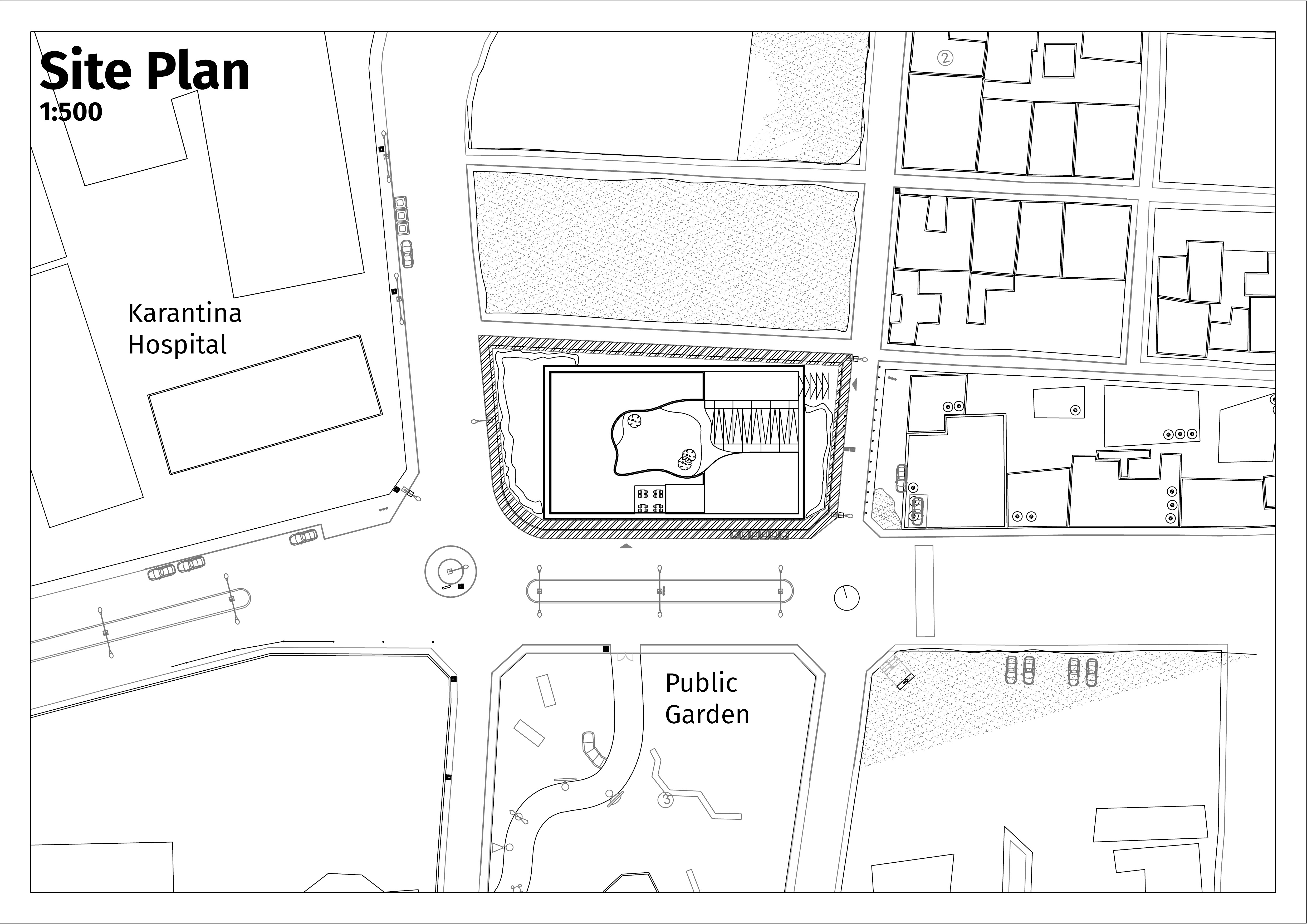 | Description | Adopting the Discrete Typology of Karantina, and implementing it into the project, I decided to study the tension between discreteness and curiosity. Since children already inhabited the site, they would be the targeted user of the library, and the center focus literally and metaphorically. A central courtyard emerges that is dedicated to the children, and the architecture forms around this courtyard like a geode. The outer facades become discrete and monotonous, while the entrance invites us into the playful spaces hidden inside. |
